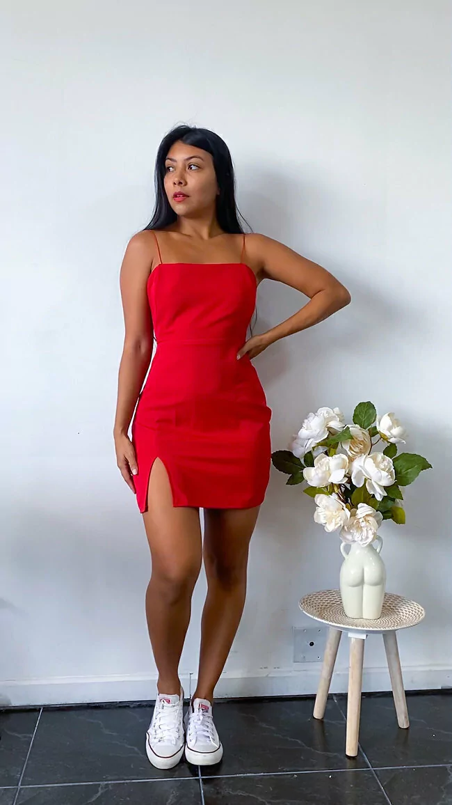 Modelagem com busto reto em forro duplo ( somente no busto), Saia com mini fenda levemente soltinha.